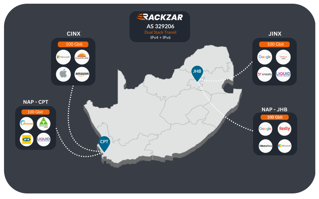 - Direct peering with major South African ISPs