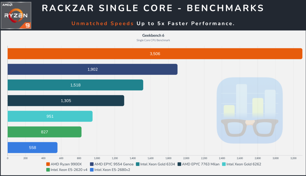 Where competitors settle for older generation hardware, Rackzar deploys cutting-edge AMD Ryzen 9 9900X processors, the same chips powering high-end gaming rigs and professional workstations. Our recent benchmarks tell the story: single-core scores of 3,384 and multi-core performance hitting 6,050 on Geekbench 6. For context, that is enterprise-grade compute power available on entry-level VPS plans.